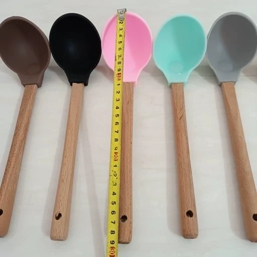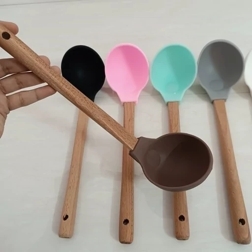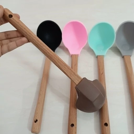 ملاقه سیلیکونی دسته چوبی گرد
