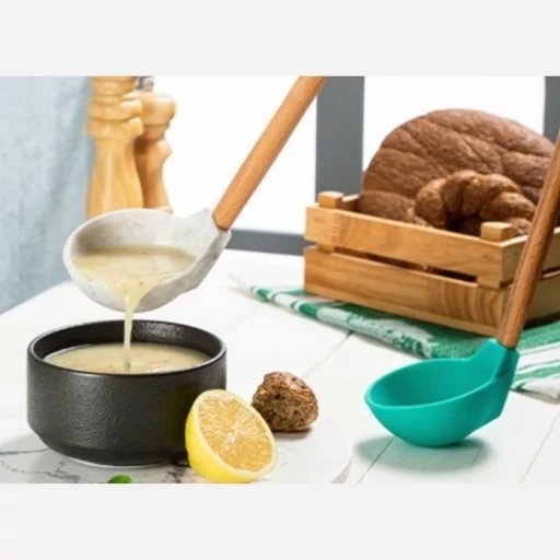 ملاقه سیلیکونی دسته چوبی گرد