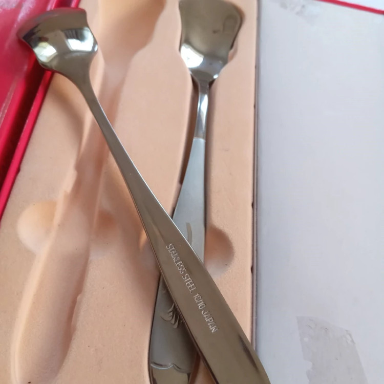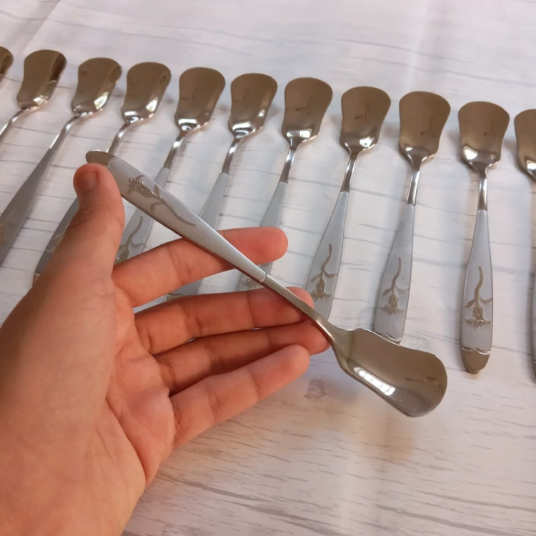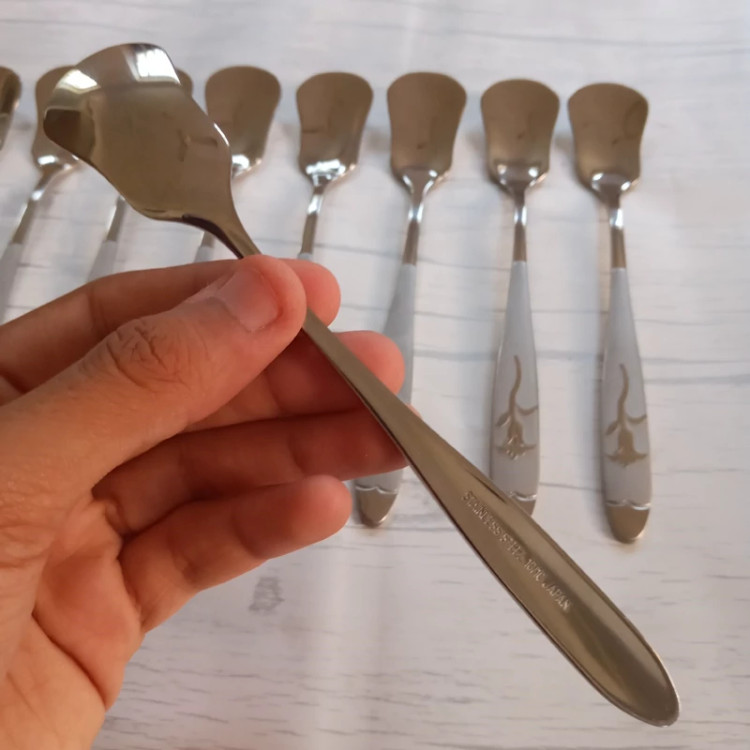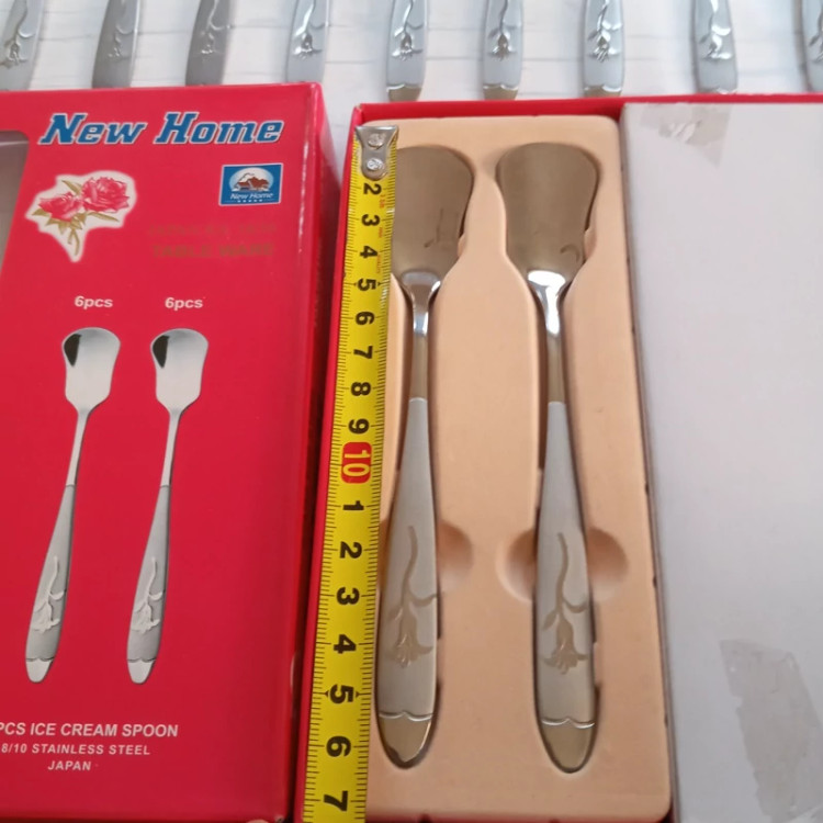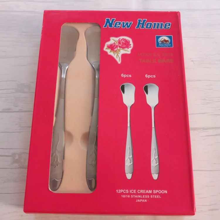 قاشق بستنی خوری طرح گل میخک ژاپنی مارک نیوهوم New Home جنس استیل ژاپن اصل بسته 12تایی طول 17سانت ضخامت 3 میل JAPAN