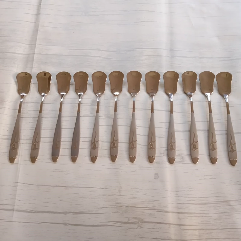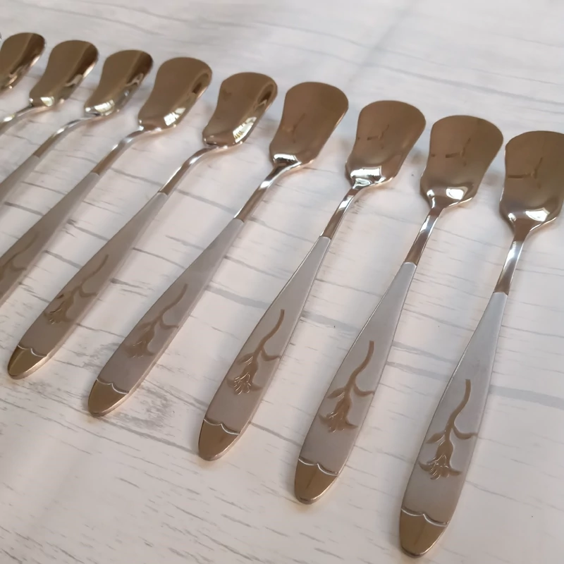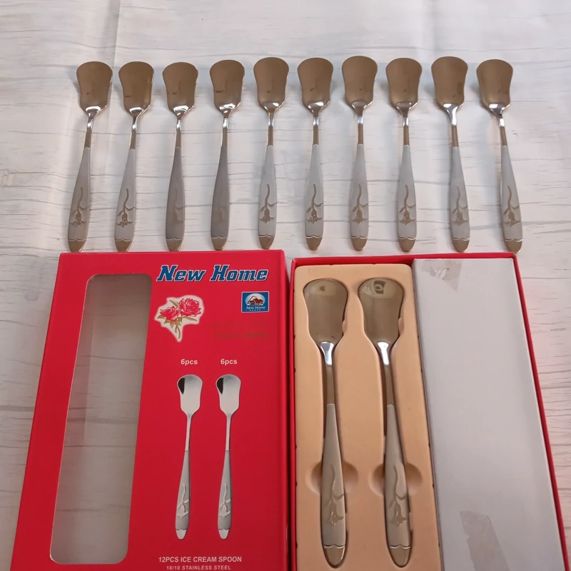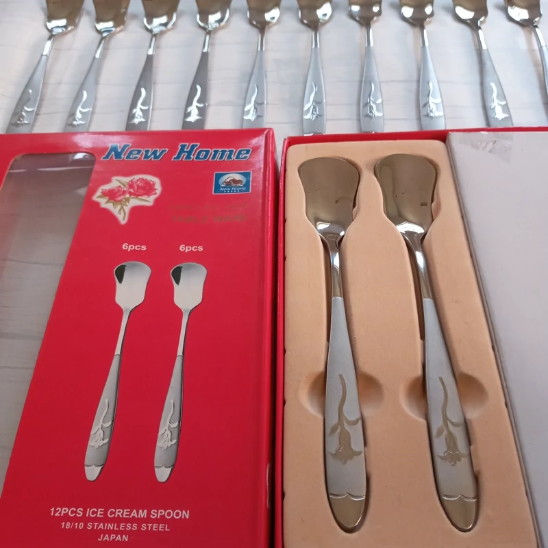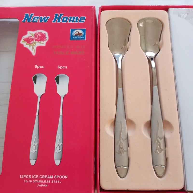 قاشق بستنی خوری طرح گل میخک ژاپنی مارک نیوهوم New Home جنس استیل ژاپن اصل بسته 12تایی طول 17سانت ضخامت 3 میل JAPAN