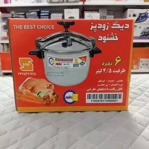 دیگ زودپز (دیگ بخار ) دو دسته مارک خشنود 6نفره و گنجایش 4.5 لیتر