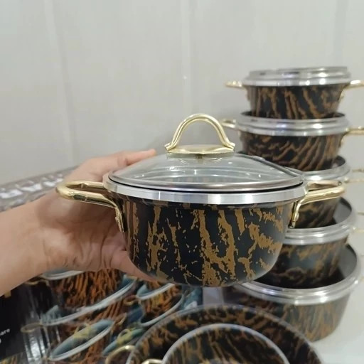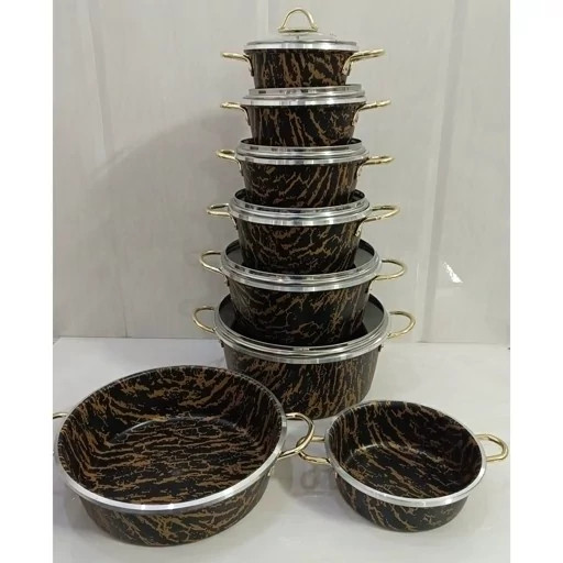شامل 6 عدد قابلمه از سایز یک نفره تا ده نفره بهمراه دو تابه