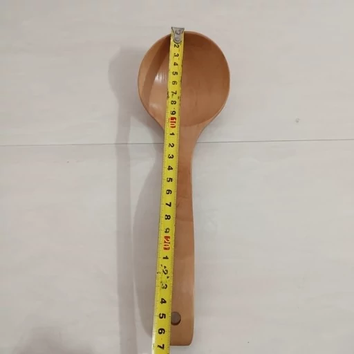 ملاقه ساده چوبی با ضخامت خیلی بالا کیفیت درجه یک ضخامت دسته 1 سانت ضخامت گود ملاقه 1.5 سانت گودی ملاقه 1.5 سانت ارتفاع 27 سانت