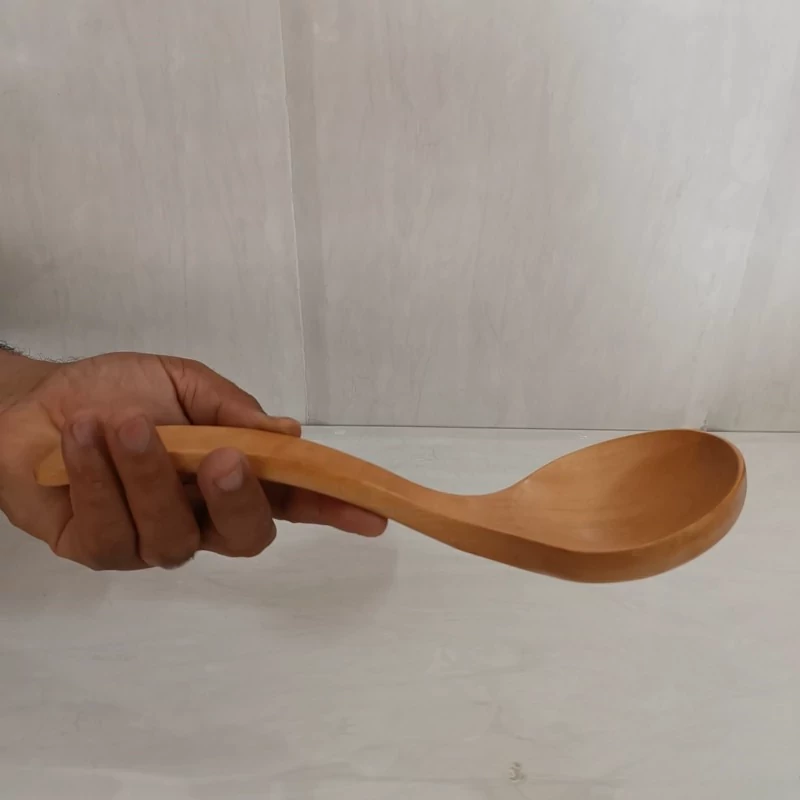 ملاقه ساده چوبی با ضخامت خیلی بالا کیفیت درجه یک ضخامت دسته 1 سانت ضخامت گود ملاقه 1.5 سانت گودی ملاقه 1.5 سانت ارتفاع 27 سانت