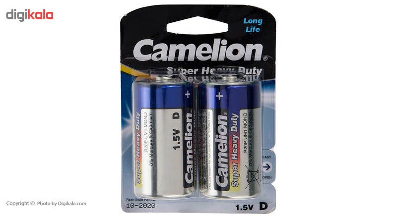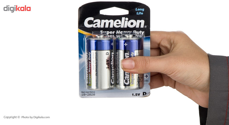 این دسته از باتریهای «کملیون» (Camelion) بهصورت بستههای دوتایی تولید و عرضهشده است. اندازه آنها D یا به عبارت دیگر بزرگ است. تکنولوژی که در تولید این نوع باتری بهکاررفته، آلکالاین بوده و دارای پایداری انرژی الکتریکی و عمر مفید است. ولتاژ این مدل از باتری های آلکالاین 1.5 ولت است و قابلیت شارژ مجدد ندارد، پس طبیعتاً نمیتوان پس از اتمام انرژی الکتریکی دوباره آن را شارژ و استفاده کرد. مدل «Super Heavy Duty» از سری محصولات شرکت کملیون باتریهای قلیایی اندازه بزرگ هستند که در بسته های 2تایی روانه بازار شدهاند و چندین برابر بیشتر از باتریهای معمولی ظرفیت دارند و درنتیجه سرویسدهی بیشتری را برای کاربران به همراه میآورند. این باتری از ماندگاری طولانی برخوردارند. بهطورکلی قیمت باتریهای آلکالاین از باتریهای معمولی بیشتر است اما با توجه به ظرفیت بیشتر این نوع از باتریها معمولاً بهصرفهتر هستند. این مدل گزینهای مناسب برای تأمین انرژی الکتریکی وسایلی مانند ساعت، رادیو و دیگر دستگاههایی است که انرژی موردنیازشان را از باتریهای سایز بزرگ تأمین میکنند.
