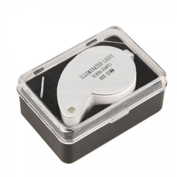 سایر توضیحات: بزرگنمایی : 40X قطر لنز : 25mm روشنایی نور LED نور طراحی شده توسط 3 باتری LR927 با 2 عدد لامپ حجم : 5.4 (L) * 3.3 (W) X 2.5 (H) سانتی متر فاصله کانونی: حدود 25 میلیمتر