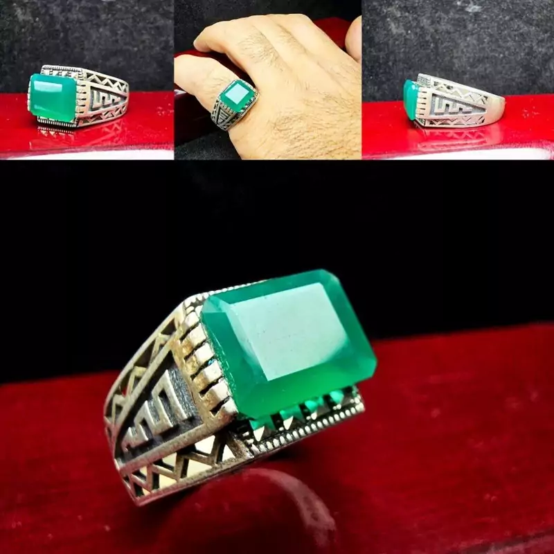انگشتر مردانه عقیق سبز 4گوش رکاب نقره چنگی مارکازیت عیار925ارسال رایگان سایزرایگان