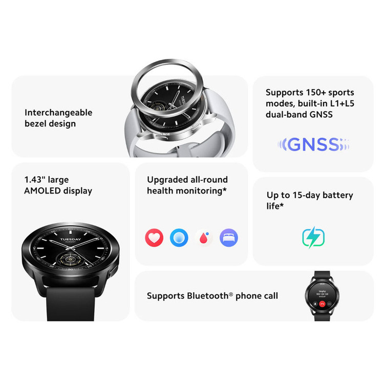 شارژدهی تا 15 روز / استاندارد مقاومت در برابر نفوذ آب 5ATM / قابلیتهای مکانیابی BeiDou, GPS, GLONASS, Galileo, QZSS / بلوتوث 5.2