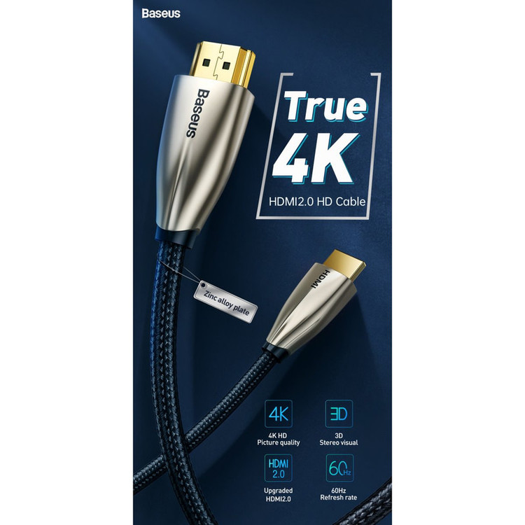 کابل اچ دی ام آی Baseus Horizontal 4K HDMI V2.0 CADSP-C01 با در نظر گرفتن استانداردهای مختلف و همچنین استفاده از مواد اولیه مرغوب، به خوبی می تواند تصاویر و ویدئوها را بون أخیر و با کیفیت بالایی برای شما منتقل کند. بهره مندی از کیفیت 4K نوید استاندارد بالایی از انتقال دیتا را به شما می دهد که در آن اطلاعات با کیفیت بسیار بالایی منتقل می شود و جزئیات نیز با دقت بالایی انتقال داده می شود. جنس کانکتورها و کابل برای CADSP-C01 ساختاری دارد که باعث اکسید نشدن آن ها و همچنین مقاومت بالای آن ها در برابر سایش شده است. برای کابل نیز روکش TPE اضافی در نظر گرفته شده که به کابل خاصیت نسبی انعطاف پذیری می دهد تا قدرت عملکرد شما بالاتر رود و استفاده از کابل برای شما راحت تر باشد و بتوانید به راحتی آن را در جای جای خانه، محل کار، دفتر و... استفاده کنید. غیر از این مورد باید اشاره کنیم که روکش بیرونی کابل به صورت کنفی است که مقاومت کابل را بسیار بالا می برد و آن را در برابر کشیده شدن و پارگی مقاوم می سازد. کانکتورهای این کابل دارای روکشی از جنس آلیاژ آلومینیوم هستند که آن ها را در برابر فشار و ضربه بسیار مقاوم و مستحکم می کند. همچنین اگر به فرم و شکل ظاهری این پوشش دقت کنید، خواهید فهمید که در قسمتی که کابل به کانکتور متصل می شود، این فلز حالتی مخروطی به خود گرفته تا استحکام بیشتری داشته باشد و زیر آن یک لایه محافظ خواهید دید که کمک می کند تا کابل در این قسمت مقاومت بیشتری در برابرفشار داشته باشد و با خیال راحت تری بتوانید از ان استفاده نمایید. اما درون کابل و کانکتورها امنیت بالایی وجود دارد که می تواندکار با این کابل ها را مطمئن تر سازد.چیپ ها و مدارهای قدرتمند استفاده شده درون این محصول، این حس اطمینان را به شما می دهد که بتوانید به خوبی و به راحتی از آن استفاده نمایید. در این بین باید به این نکته بسیار مهم نیز اشاره کنیم که این کابل دارای نسخه HDMI2.0 هست که سبب می شود تصاویر به خوبی و با سرعت برای شما نمایش داده شود و هیچگونه تأخیری را نداشته باشد و در نهایت اتصالی پایدار را به شما خواهد داد. در انتها باید رزولوشون 2160 × 3840 را کابل را اضافه کنیم و این را نیز بیافزاییم که در ساختار کابل (بخشی از قسمت کانکتورها) از آلیاژ آلومینیوم استفاده شده است.