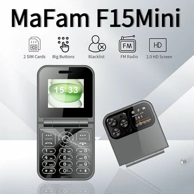 گوشی F15 Mini، یک گوشی دکمهای و تاشو با طراحی جذاب و مدرن است که به سبک آیفون 15 مینی طراحی شده است. این گوشی با قابلیت پشتیبانی از دو سیمکارت و درگاه تایپ C، انتخابی ایدهآل برای کاربرانی است که به دنبال یک دستگاه با کارایی بالا و امکانات مناسب هستند. در ادامه، به بررسی ویژگیها و امکانات این گوشی میپردازیم: