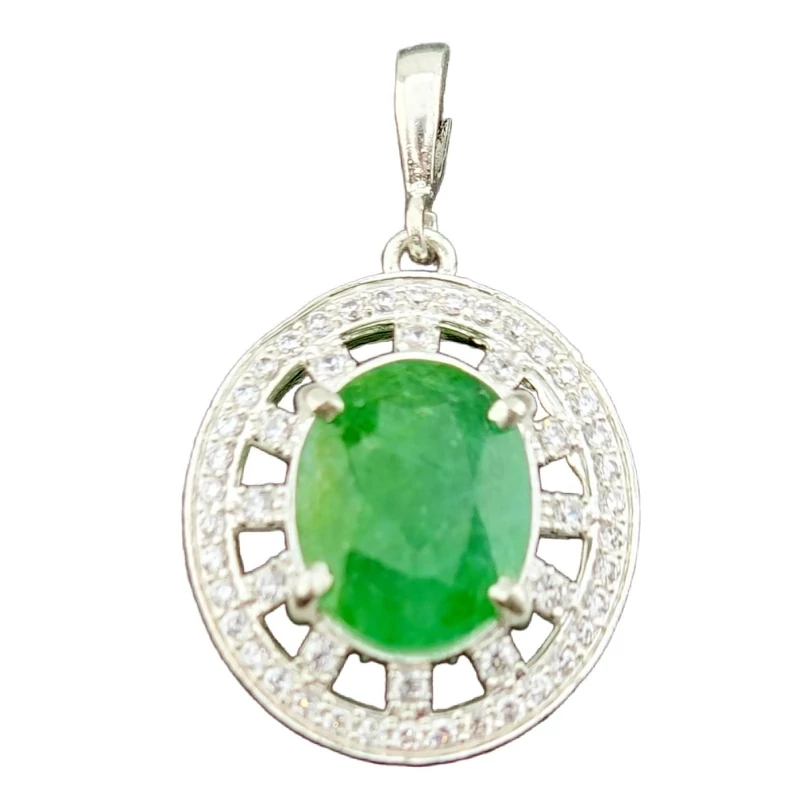 گردن آویز قیمتی نقره با نگین زمرد اصل برزیلی معدنی