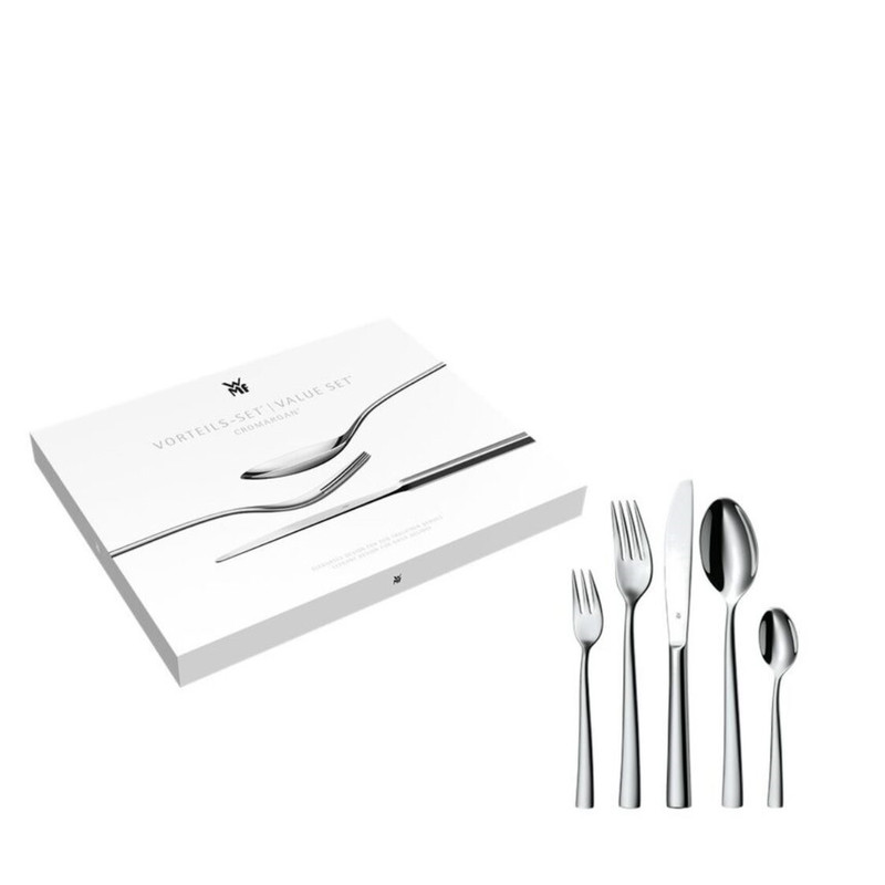 ساخته شده از فولاد کرومارگان ضد زنگ 12 عدد چنگال غذا خوری 12 عدد چنگال میوه خوری 12 عدد قاشق چای خوری 12 عدد قاشق غذا خوری 12 عدد کارد غذا خوری