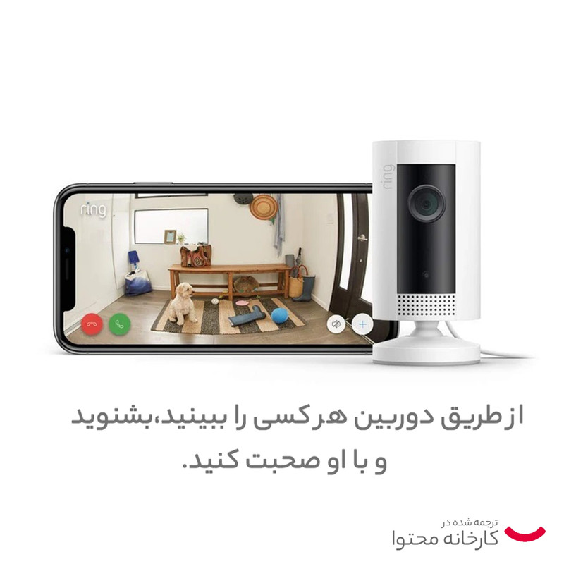 دوربین Ring برند معتبر امریکا که در سال 2018 به مالکیت کمپانی آمازون در آمد از جمله شناخته شده ترین برند های تجهیزات امنیتی به حساب می آید. دوربین Ring مدل Indoor Cam ساده ترین مدل دوربین آپارتمانی این کمپانی به حساب می آید. از قابلیت های این دوربین کنترل کامل آن توسط نرم افزار رینگ (ring) می باشد: دریافت نوتیفیکیشن real time بر روی گوشی تلفن همراه و یا تبلت خود، مشاهده تصویر و شنیدن صدا به صورت آنلاین و زنده، داشتن یک داشبورد واحد برای مدیریت دستگاه ها و کنترل امنیت و شخصی سازی کردن تنظیمات امنیتی، همه به وسیله اپلیکیشن رینگ انجام می گردد. برای ایجاد خانه ای امن تر و هوشمندتر می توانیم این دوربین مداربسته کوچک را به مجموعه ای از دستگاه های سازگار متصل و امکانی نظیر باز کردن درب برای آشنایان از راه دور، استفاده از الکسا (Alexa) برای مانیتورینگ و کنترل تمامی دستگاههای ring تنها با یک کنسول، بر امکانات موجود اضافه کنیم. ویژگی های این محصول» مقاوم در دمای منفی 20 تا 50 درجه سانتیگراد ، امکان مکالمه دو طرفه با برطرف کردن نویز، مناسب برای فصای باز و بسته، قابلیت دید در شب و تاریکی