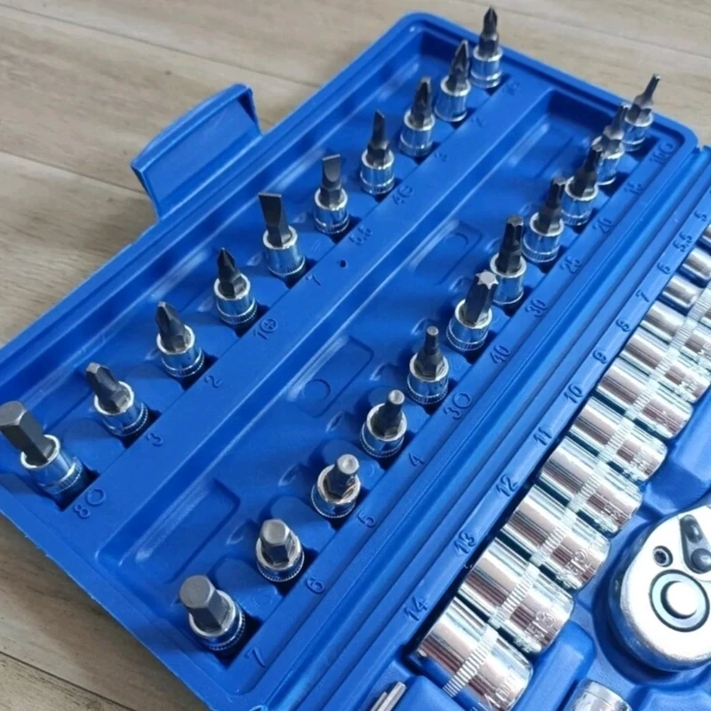 درایو 1/4 یک جعبه بکس کوچک و ظریف به حساب می آید که کارهای سبک با این بکس انجام می شود. این مجموعه بکس 46 عددی شامل 21 عدد سری پیچ گوشتی دو سو و چهارسو آلنی در سایزهای مختلف می باشد. اجزای این جعبه بکس به شرح زیر است: