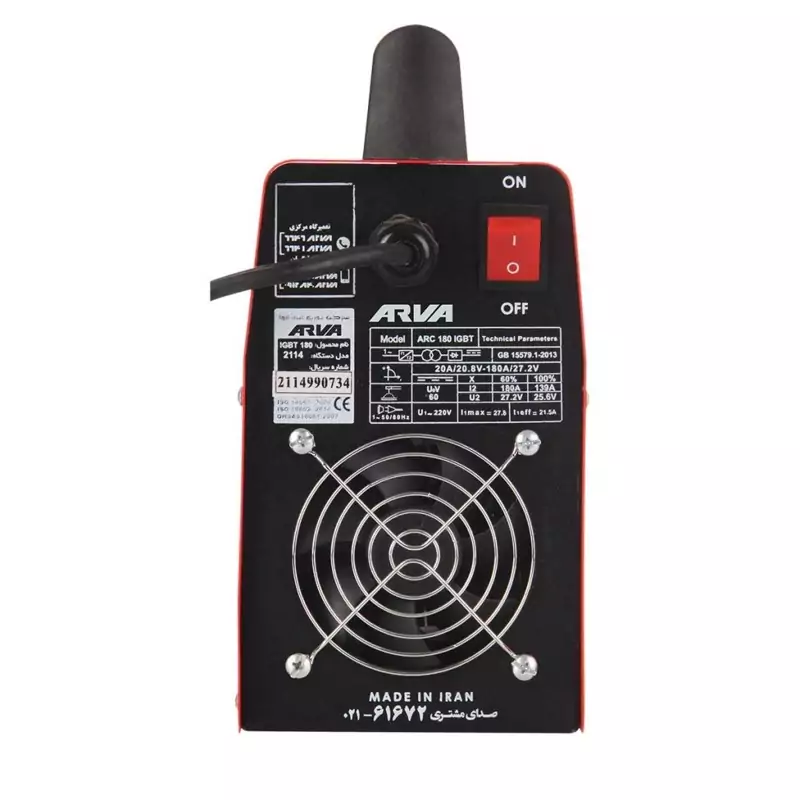 اینورتر جوشکاری 180 آمپر آروا مدل 2114 با 70 ماه گارانتی و ارسال رایگان به همراه کابل و انبر جوش و اتصال درجه یک