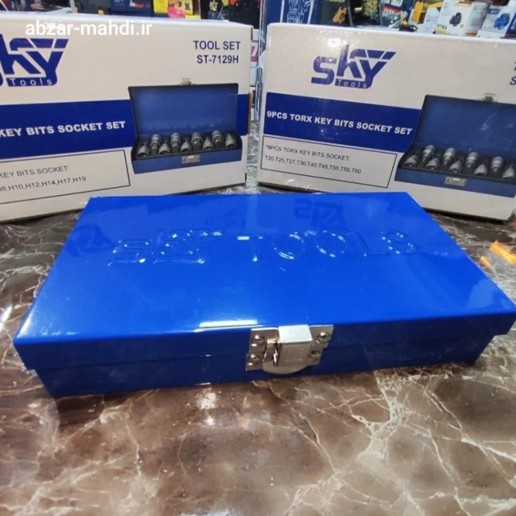 جعبه بکس آلن ستاره ای 9 پارچه صنعتی اسکای مدل ST-7109T جنس کروم وانادیوم ارسال رایگان