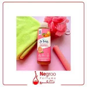 💗شامپو بدن اسکرابی لیمو صورتی و پرتقال ماندارین سینت ایوز با عطر و رایحه مطبوع برای پاکسازی پوست است.
