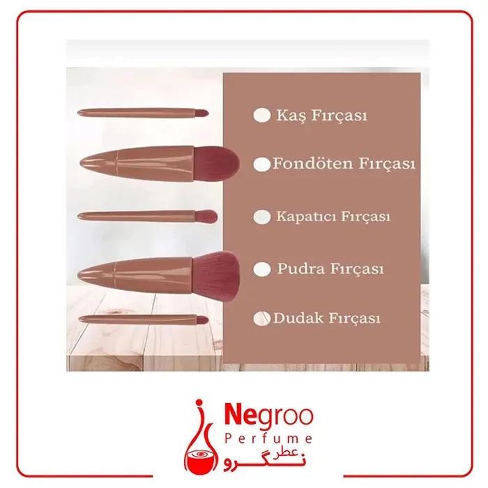 این ست براش آرایشی مسافرتی، شامل 5 عدد براش و آینه در درب محصول است که هر یک کاربرد خاصی دارد. همه