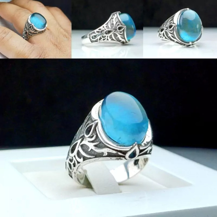 انگشتر مردانه آکومارین اصلی رکاب نقره چنگی دستسازعیار925ارسال رایگان سایزرایگان