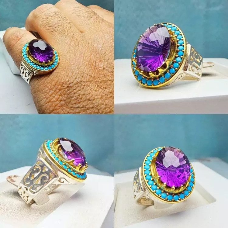 انگشتر مردانه آماتیس اصلی رکاب نقره چنگی صفوی عیار۹۲۵ارسال رایگان سایزرایگان