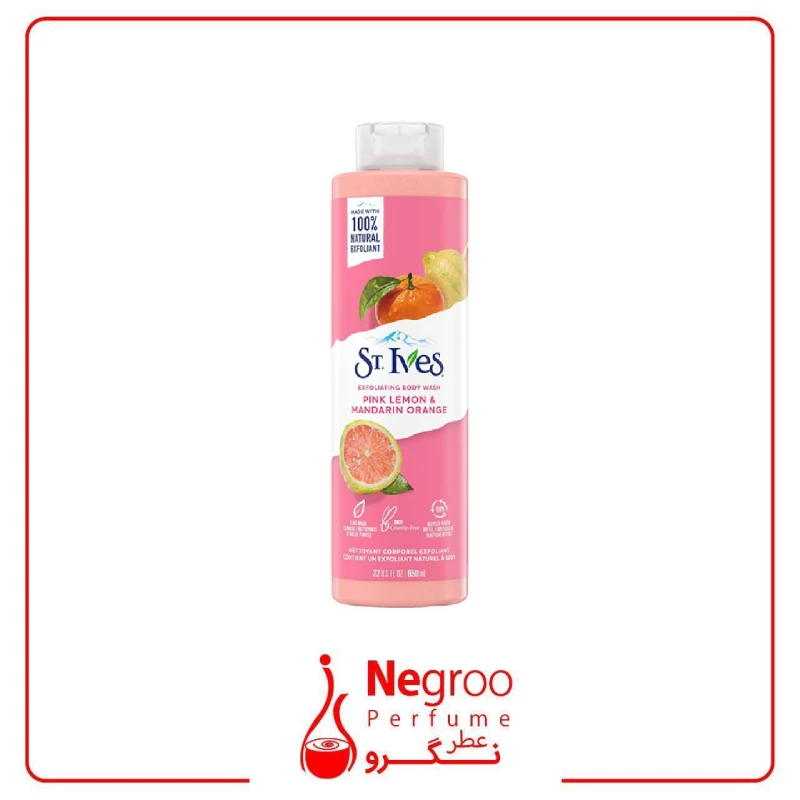 شامپو بدن اسکرابی لیمو صورتی و پرتقال ماندارین سینت ایوز با عطر و رایحه مطبوع برای پاکسازی پوست است. این شامپو با برخورداری از عصاره لیموی صورتی و پرتقال، پوست را به خوبی تمیز کرده و آن را درخشان و شاداب می کند. تیرگی های پوست را از بین می برد و از خشک شدن بیش از حد و پوسته پوسته شدن آن جلوگیری می کند؛ به همین خاطر انتخاب بسیار مناسبی برای انواع پوست است اسکراب های سنت ایوز پرفروش ترین اسکراب در آمریکا می باشد. این محصول به علت داشتن دانه های اسکرابی خاصیت لایه برداری نیز دارد و موجب از بین رفتن سلول های مرده پوست میشود.
