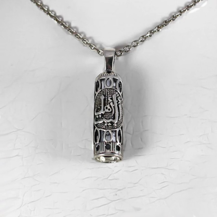 دعای حرز امام جواد (ع) از معتبرترین و موثرترین ادعیه تایید شده توسط معصومین (ع) و علما میباشد. گردنبند طرح اهل بیت که شامل دعای حرز امام جواد (ع) میباشد از نقره با عیار ۹۲۵ ساخته شده است و داخل آن حرز قرار داده شده است. این محصول با ذوق و سلیقه خاصی طراحی شده و فریم پرکاری نسبت به محصولات مشابهش دارد. قسمت آویز این محصول نیز کیفیتی بالا و مشابه فریم دارد که در ایجاد اتصال میان گردنبند و زنجیر نقش خود را به خوبی ایفا میکند. مجموعه طرح زیبا و قیمت مناسب این محصول باعث می شود همه افرادی که مایل به داشتن حرز امام جواد (ع) هستند توانایی خرید آن را داشته باشند. حرز امام جواد (ع) بسیار مجرب و مورد تایید است. توجه داشته باشید که قیمت این گردنبند بدون در نظر گرفتن زنجیر تعیین شده است.