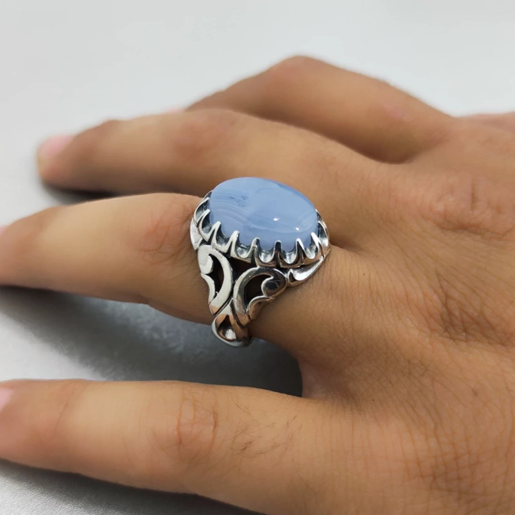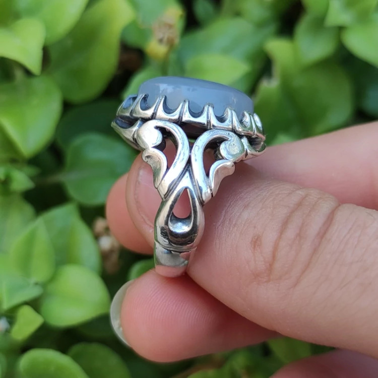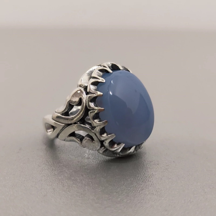 انگشتر عقیق کبود یمنی نقره مردانه طرح باوند