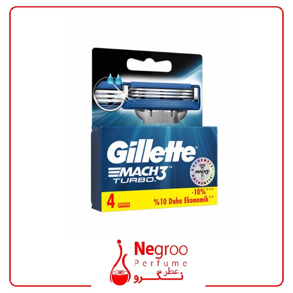 از پر فروش ترین تولیدات کمپانی ژیلت است که برای تمامی دسته های ژیلت سری mach 3 از جمله mach 3 turbo قابل استفاده است . هر کدام از دارای 3 لبه نزدیک به هم از جنس استیل ضد زنگ و ضد حساسیت هستند که برندگی و ایمنی بالایی دارند . در قسمت بالایی هر کدام از این تیغ ها نوار صابونی وجود دارد که پس از تماس با آب ، ماده ای لغزنده پخش می کند تا اصلاحی نرم تر و روان تر داشته باشید .