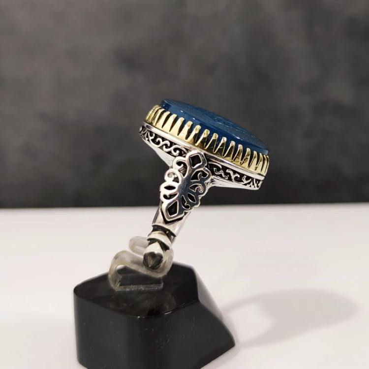 انگشتر مردانه عقیق آبی خطی سبحان الله رکاب نقره چنگی صفوی