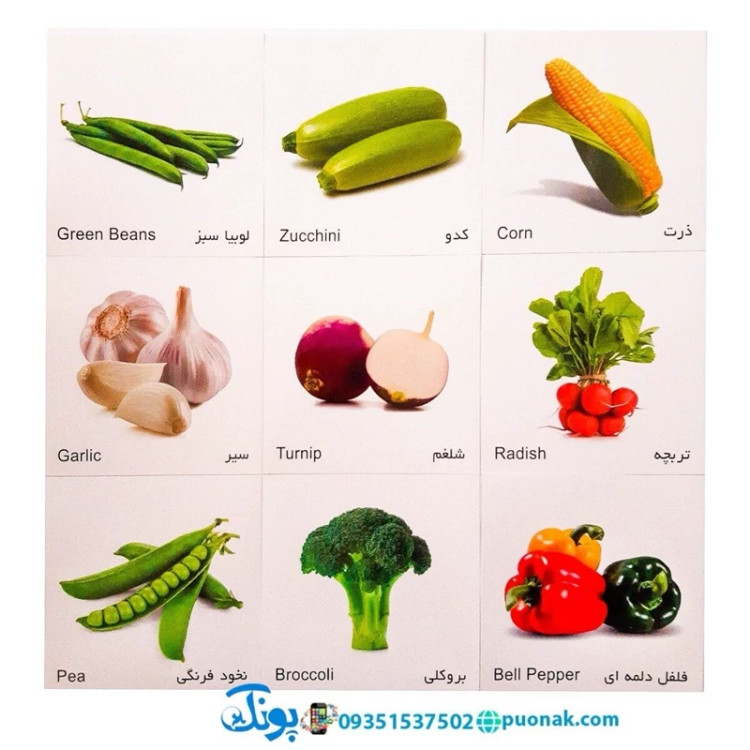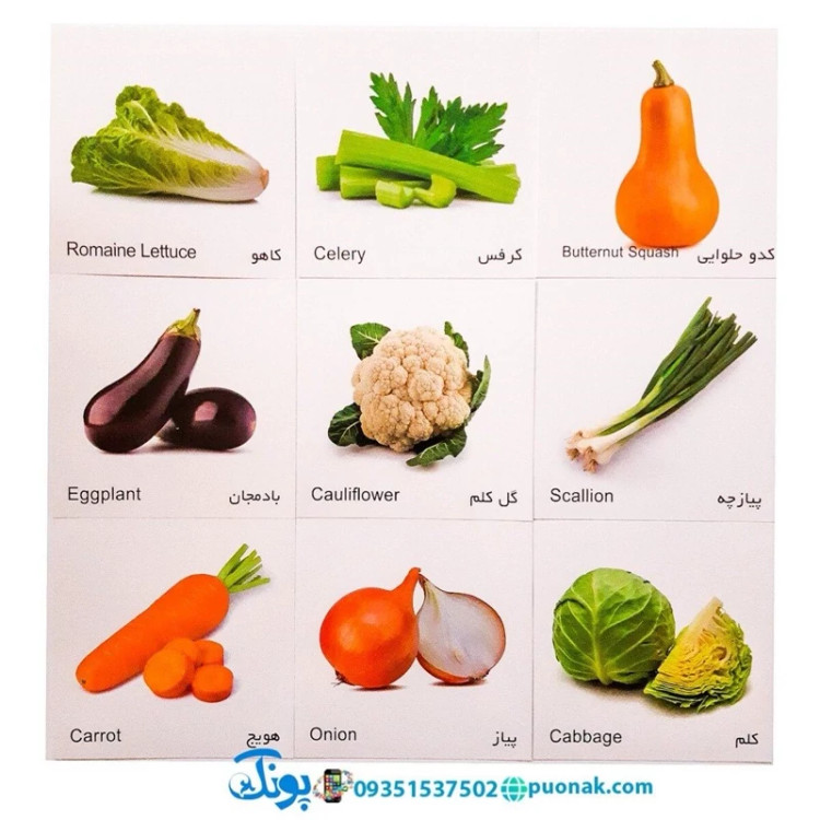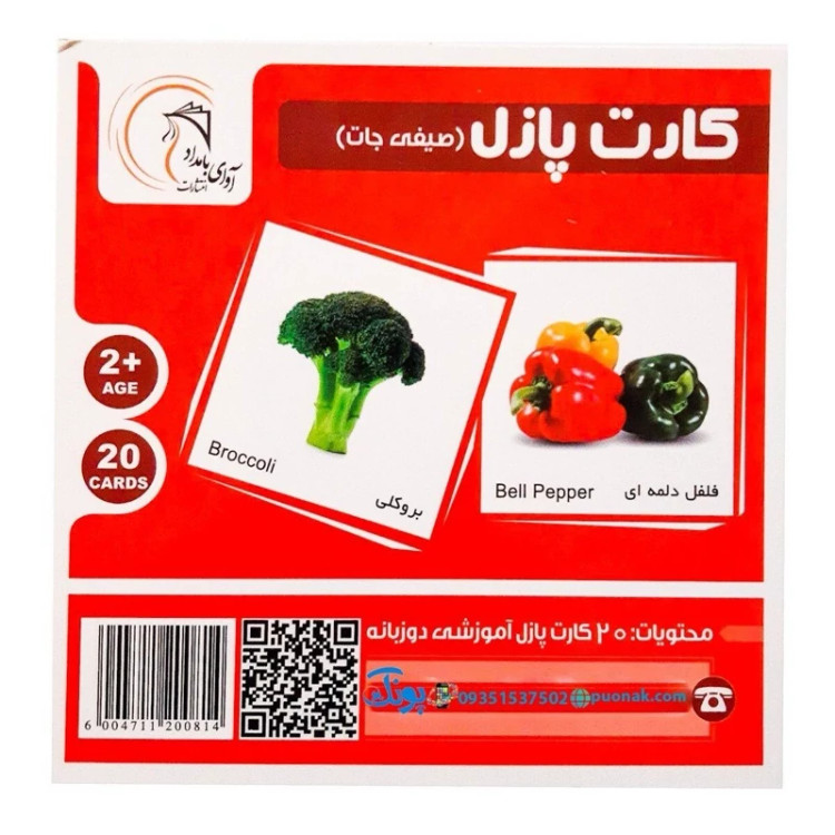 کارت آموزش صیفیجات مدل کارت پازل انتشارات آوای بامداد (20 کارت پازل آموزشی دو زبانه)