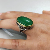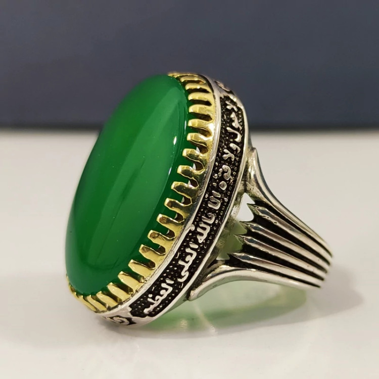 انگشتر عقیق سبز نقره مردانه طرح دورطلایی فاخر با طرح لا حول ولا قوه الا بالله العلی العظیم