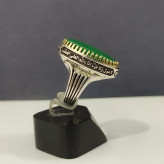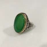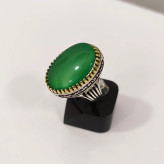 انگشتر عقیق سبز مردانه طرح دورطلایی فاخر از نقره با عیار 925 ساخته شده است. وجود چنگ های بسیار ظریف و ریزه کاری های موجود در رکاب نشان از هنر بی نظیر ایرانی در عرصه انگشترسازی میباشد. این رکاب علاوه بر داشتن طرح های خاص و زیبا دارای استحکام بسیار خوبی میباشد که با توجه به وزن مناسبش گزینه ی خرید بسیار خوبی برای افرادی است که کارهای نسبتا سنگین انجام می دهند. نگین به کار رفته در این محصول عقیق سبز اصل معدنی میباشد که توسط چنگ های زرد رنگ احاطه و محافظت میشود. سایز نگین در حدود 2٫5 سانتی متر می باشد که سایز درشتی محسوب می شود که بسیار ایدهال برای کسانی است که عاشق نگین های درشت هستند.