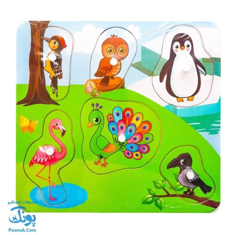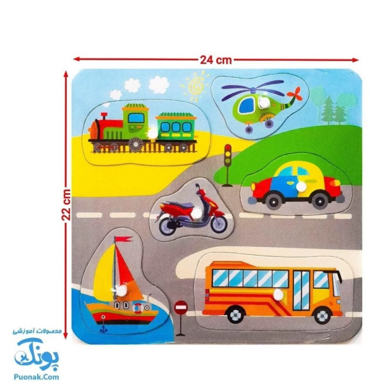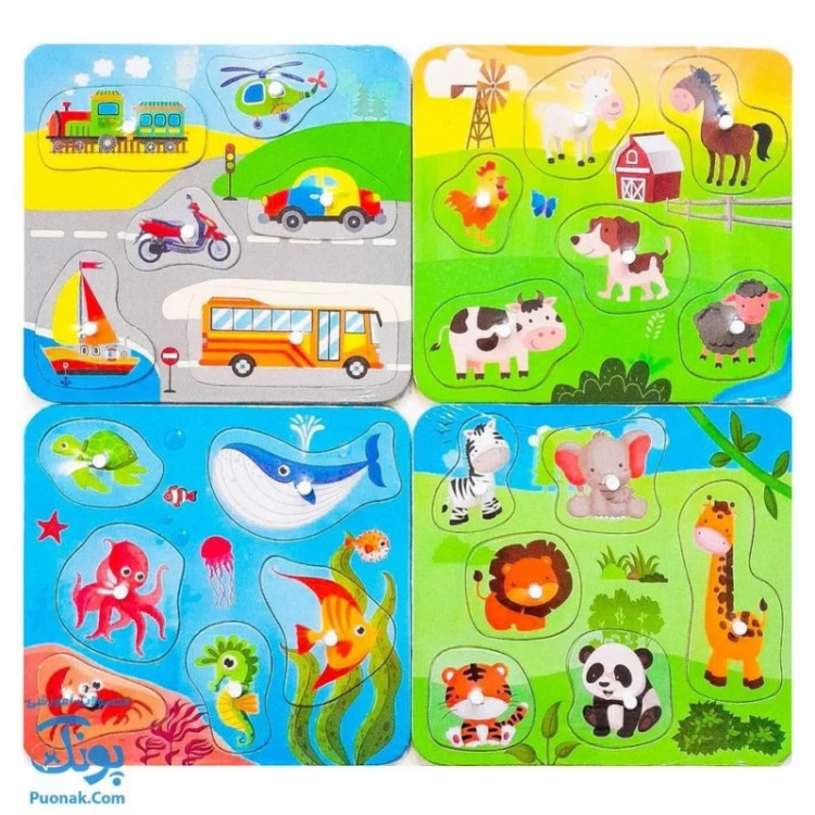 پازل های پین دار آوای بامداد۶ قطعهوسایل نقلیه ، پرندگان ، حیوانات دریایی ، حیوانات مزرعه ، حیوانات جنگل و میوه هاابعاد پازل ۲۲ × ۲۴