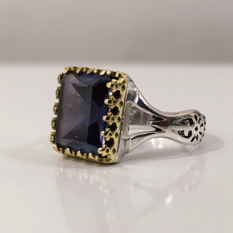 انگشتر مردانه طرح پرهان از نقره با عیار 925 ساخته شده است. این انگشتر نسبت به اکثر انگشترها وزن نقره و استحکام بیشتری دارد. ارزش بالای این محصول به نگین اصل و معدنی آمیتیست آن می باشد که خوش رنگ بوده و دارای تراش الماس شکل می باشد.
