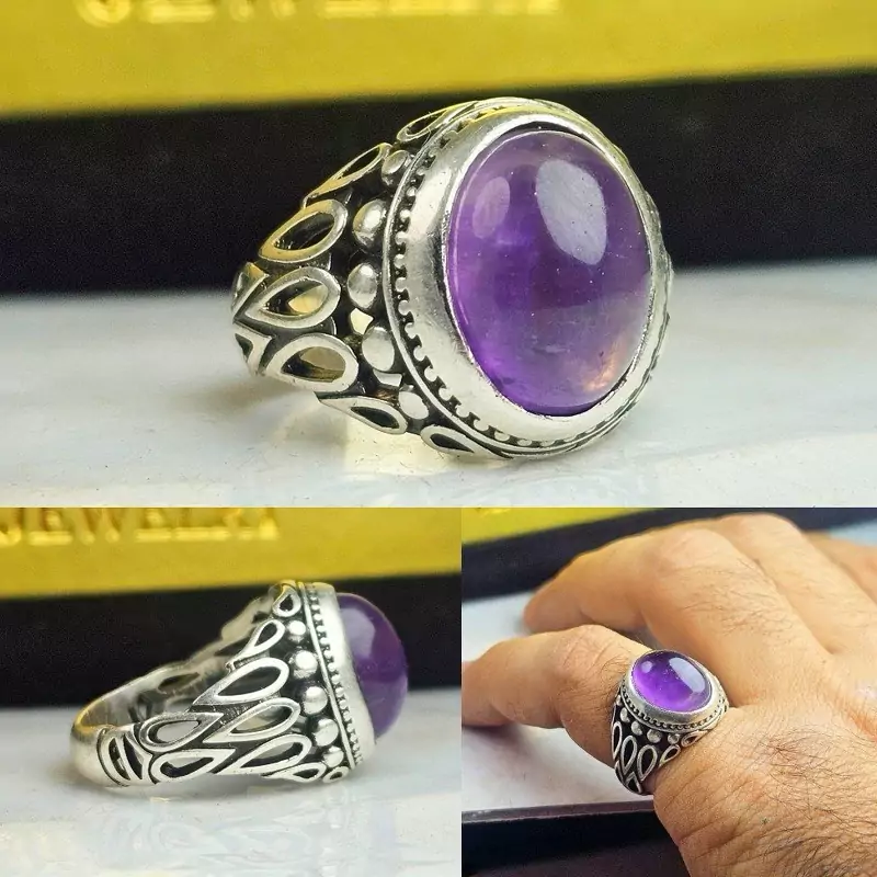 انگشتر مردانه آماتیس دامله تراش اصلی رکاب نقره فیلی شبکه عیار۹۲۵ارسال رایگان سایزرایگان