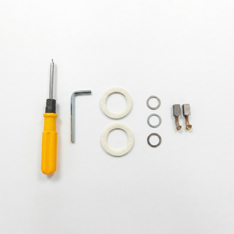 پیچ گوشتی، آچار آلن، واشر، ذغال دستگاه، دفترچه راهنما، کیف، کیسه پسماند، سمباده
