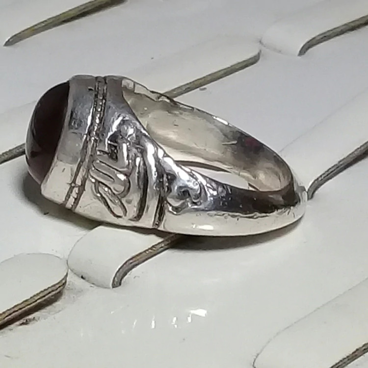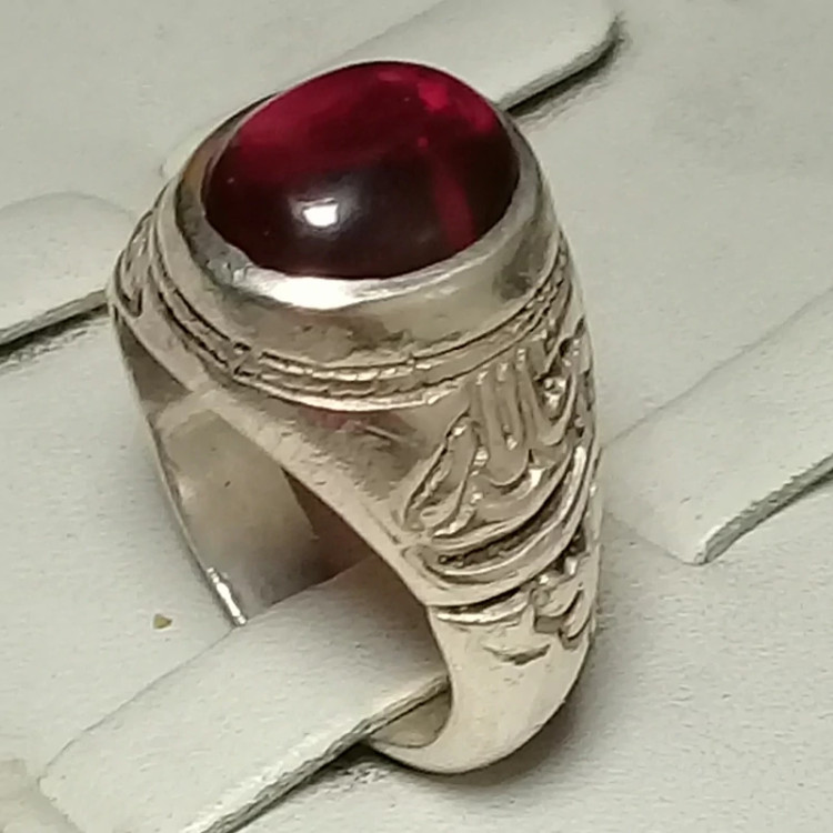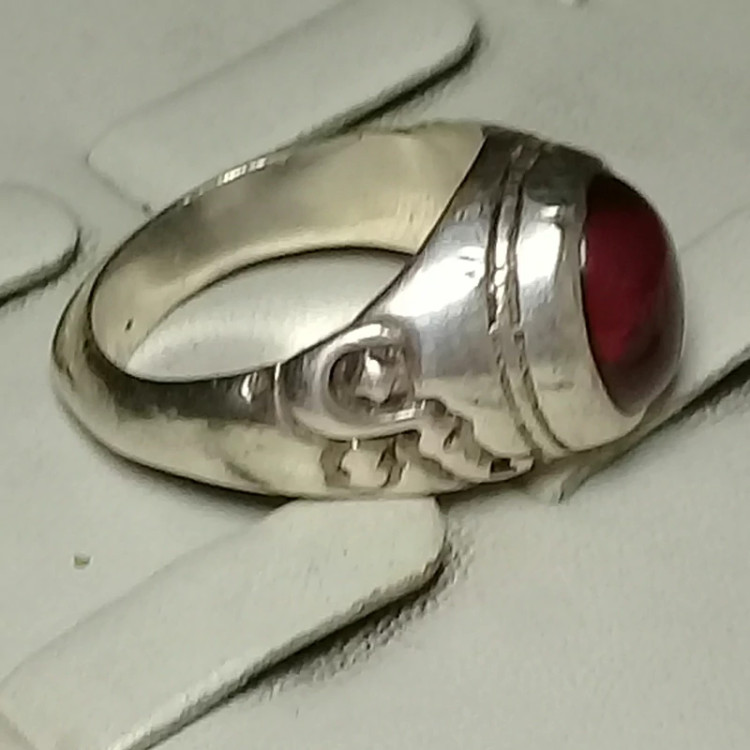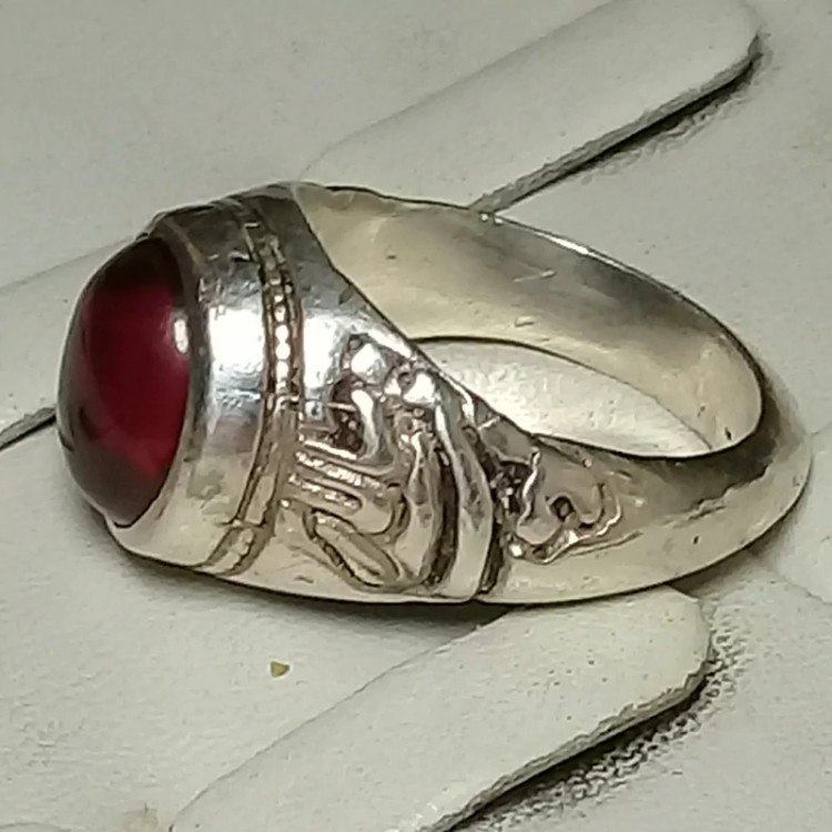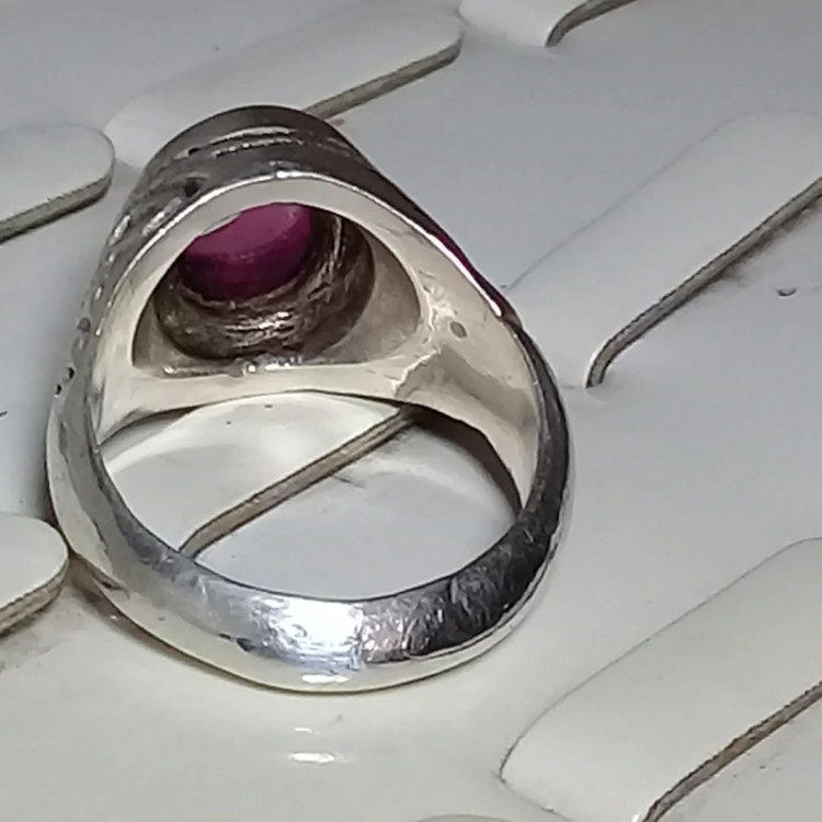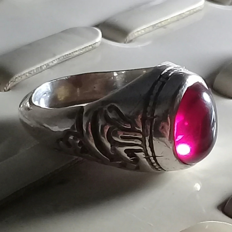 انگشتر کهنه دستساز کلکسیونی قلمزنی یاقوت سرخ معدنی