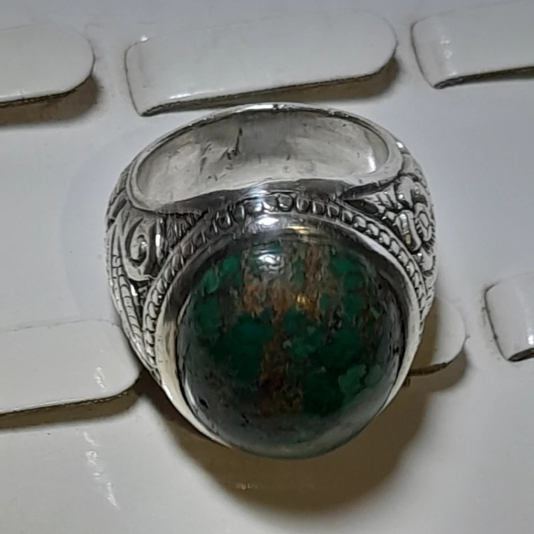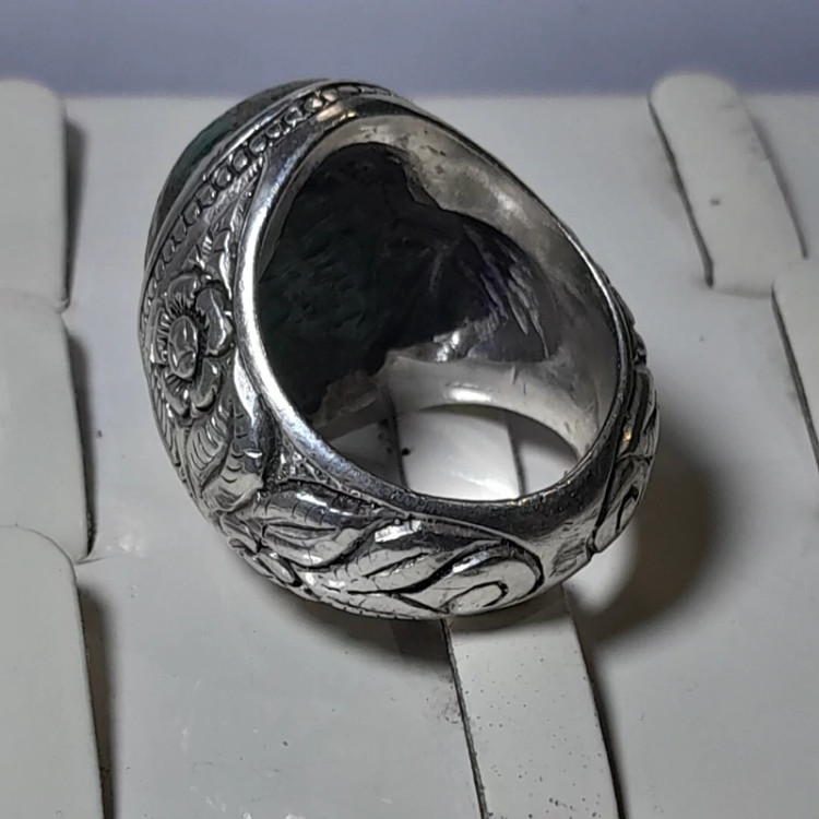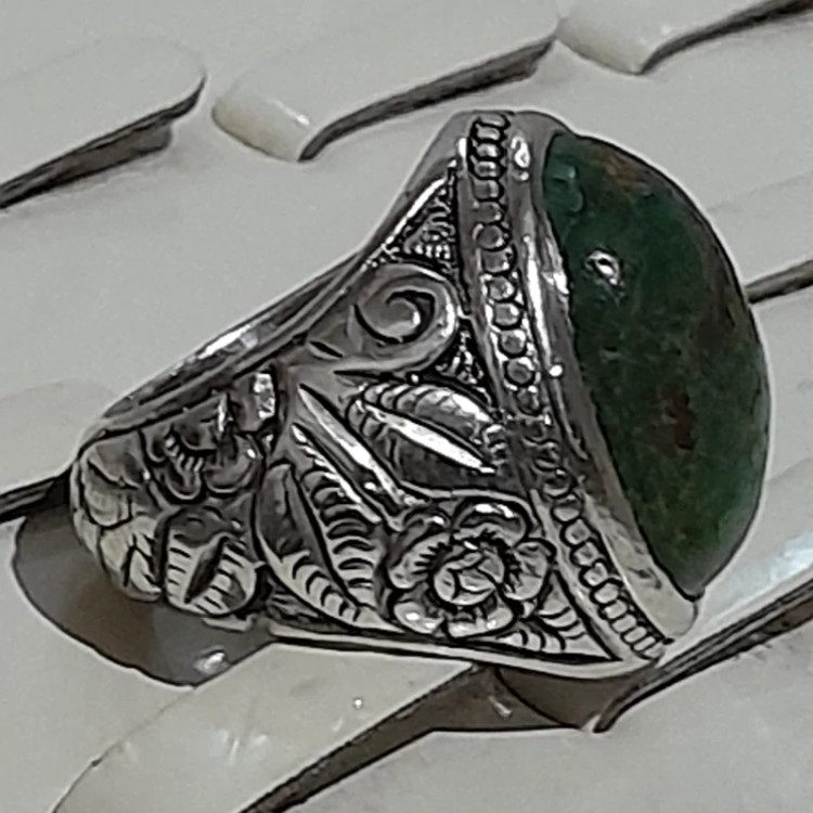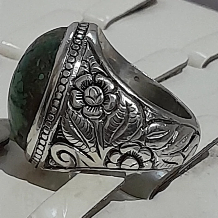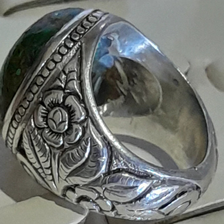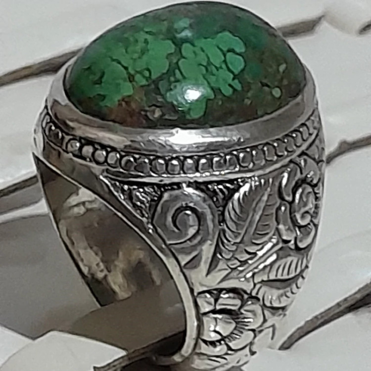 انگشتر دستساز کلکسیونی فیروزه نیشابوری رکاب قلمزنی