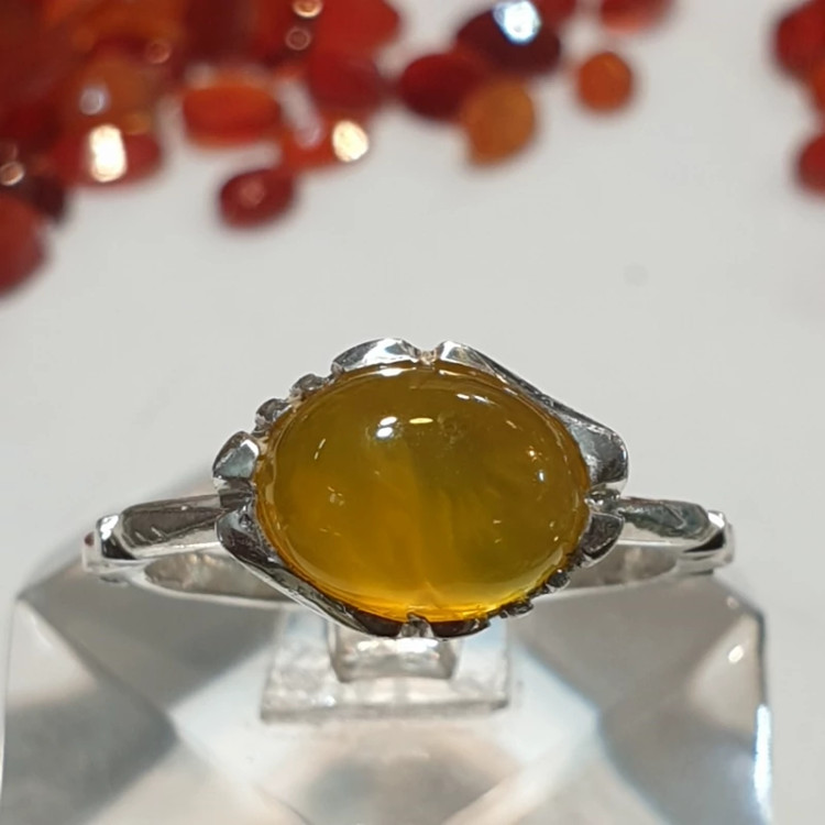 انگشتر نقره مدل صفویه ظریف با عقیق زرد شرف شمس اصلی