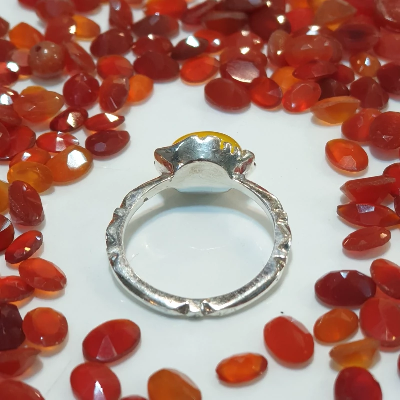 انگشتر نقره مدل صفویه ظریف با عقیق زرد شرف شمس اصلی