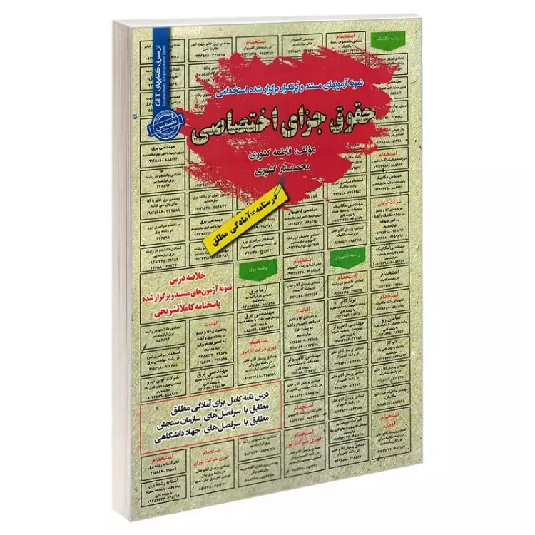 کتاب نمونه آزمون های مستند و پرتکرار برگزار شده استخدامی حقوق جزای اختصاصی اثر فاطمه کشوری و محمد ستار کشوری