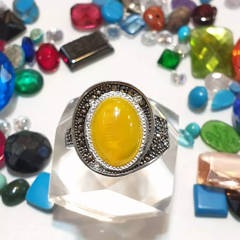 نگین عقیق زرد خراسانی با حکاکی شرف شمس به موقع و با آداب حکاکی شده جهت خانوما. هدیه روز 19 فروردین. مناسب جهت نماز . دارای خواص شادمانی . حفظ از بلا. سفارش شده جهت رزق و روزی