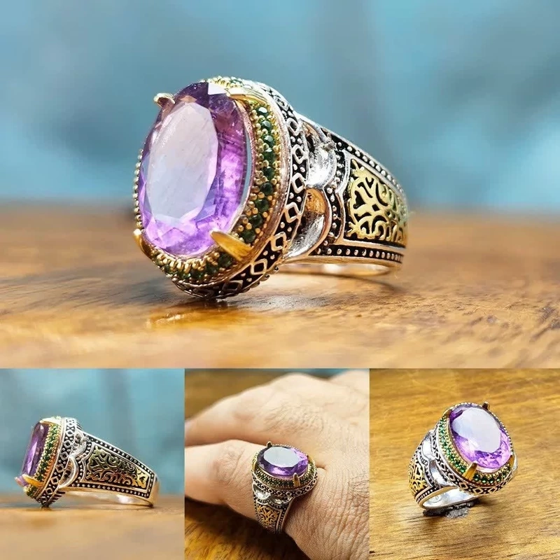 انگشتر آماتیس آمیتیست آماتیست آمیتیس اصلی رکاب نقره مخراجی نگین سبز نقره عیار 925 ارسال رایگان