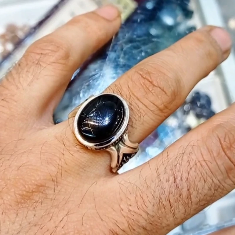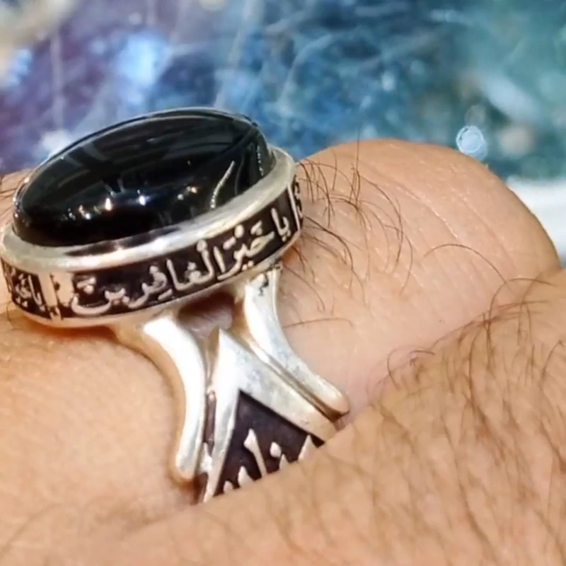 انگشترعقیق یمنی یمن مشکی اصلی رکاب نقره صفوی دستساز نقره عیار 925 ارسال رایگان