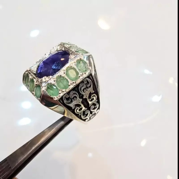 انگشتریاقوت کبوداصل مخراج زمردزامبیا اصلی رکاب نقره دستساز نقره عیار 925ارسال رایگان