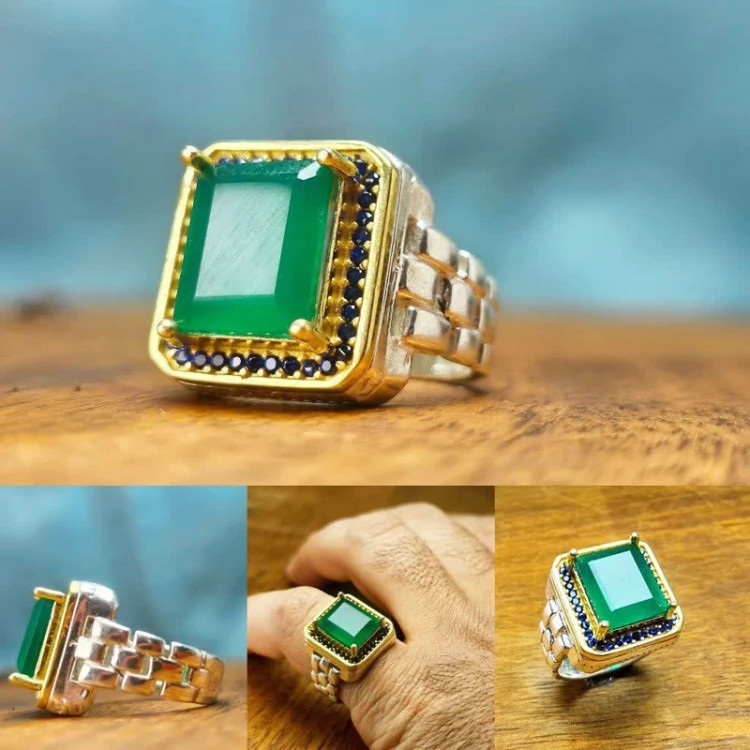 انگشترعقیق سبزچهارگوش رکاب نقره رولکسی مخراج نقره عیار 925 ارسال رایگان