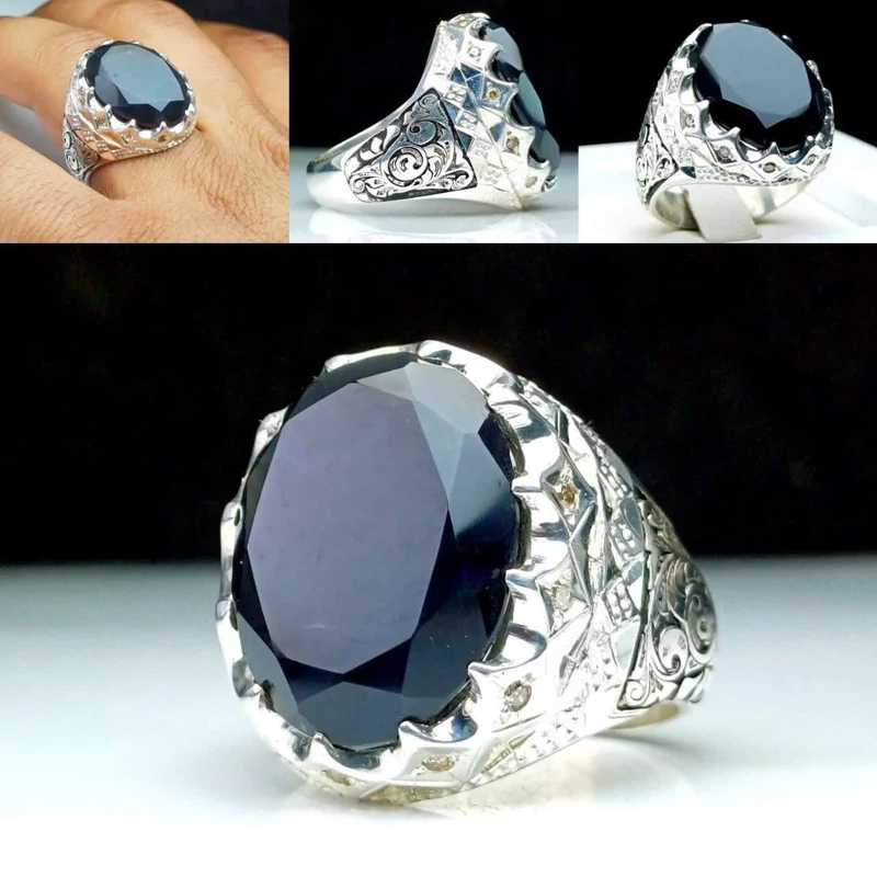 انگشتر عقیق یمنی یمن مشکی اصلی مخراج بلریان اصلی رکاب نقره دستساز نقره عیار 925ارسال رایگان