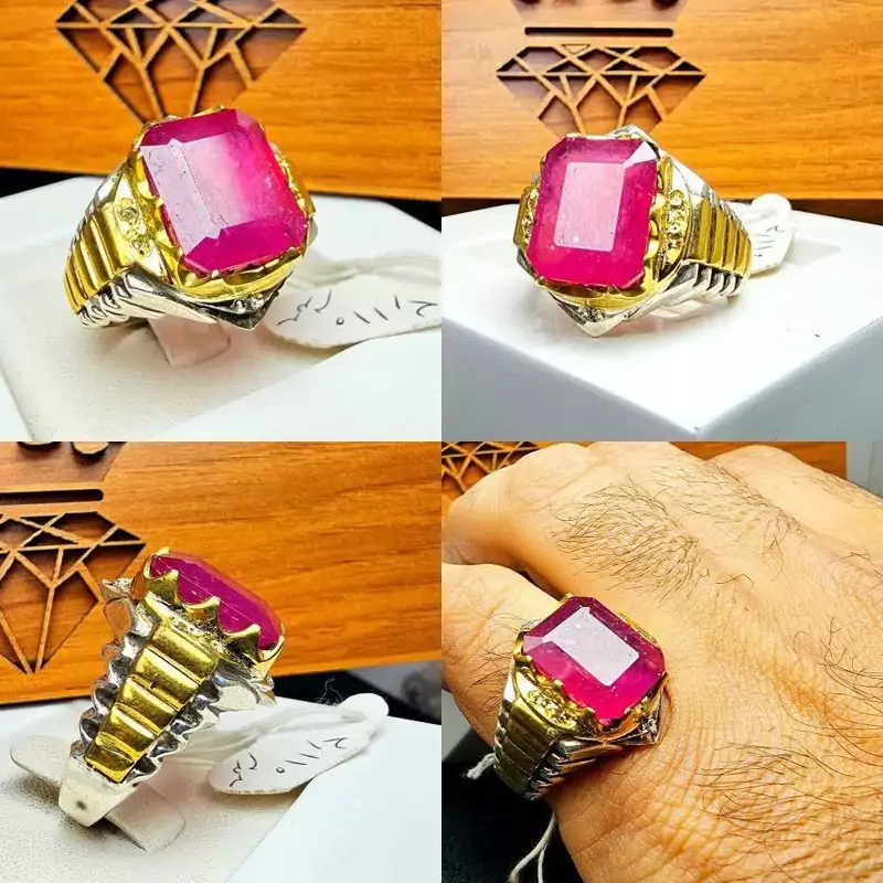 انگشتریاقوت سرخ قرمز اصلی مخراج برلیان اصلی رکاب نقره دستساز رولکسی نقره عیار 925 ارسال رایگان