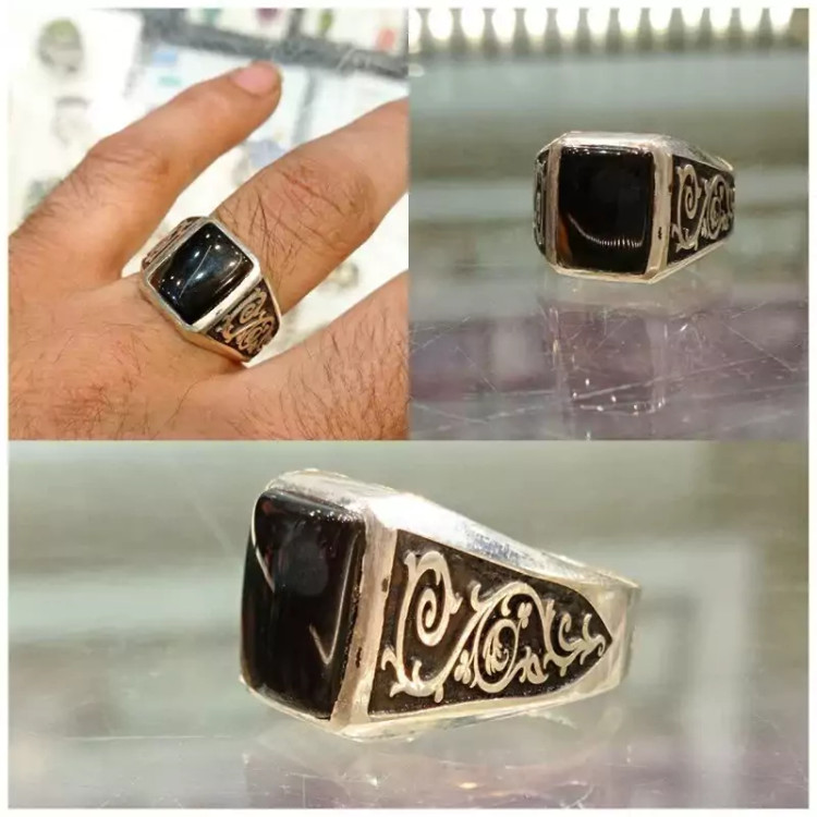 انگشتر عقیق یمنی یمن مشکی اصل رکاب نقره دستساز نقره عیار 925 ارسال رایگان