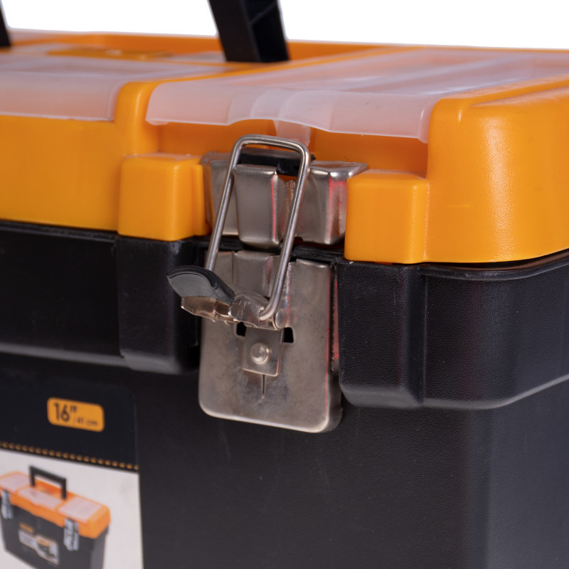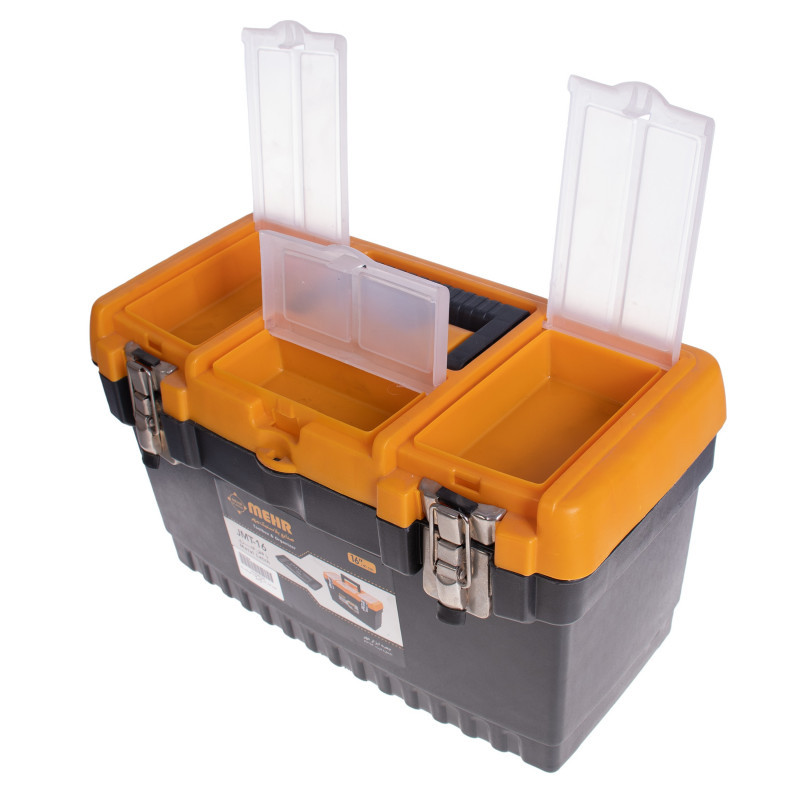 دارای یک سینی قابل حمل 6 قفسهای به عمق 3 سانتیمتر/ دارای 3 محفظه با عمق 3.5 سانت و در شفاف بر روی در/ امکان نصب قفل اضافه/ مجهز به دستگیره پلاستیکی مقوم تاشو/ ارگونومیک و کاربردی